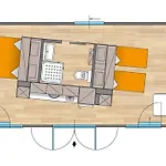 K vybavení pokoje v tomto ubytování typu kemp patří pohovka, místnost na posezení a ovládání klimatizace i terasa. Toto ubytování má také kompletní kuchyni a výhled na zahradu. V ložnicích jsou k dispozici hypoalergenní polštáře, nealergenní polštáře a hypoalergické polštáře. Bidet, samostatná toaleta a sprcha jsou součástí koupelny.